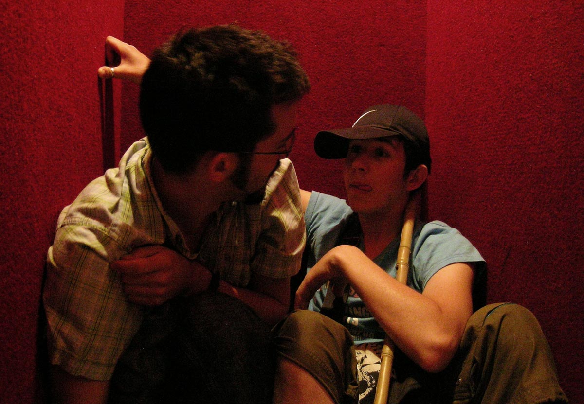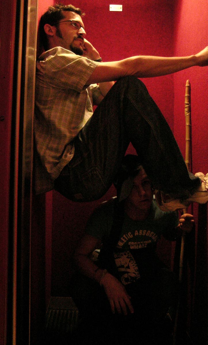 J’en avais marre de dormir à même le sol, donc je devais aller chercher mon dessous de clic-clac dans ma cave. Hop on se déguise et on décide d’en faire une darasse. Tout est filmé à la main, on se passe la caméra de temps en temps pour alterner. Du coup on ne s’arrete pas de jouer, c’est comme si nous vivions la scène réellement.